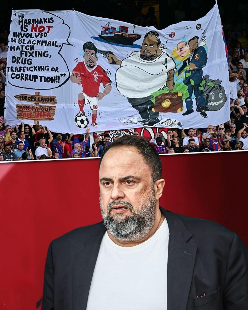 The banner also included a caricature of Marinakis pointing a gun at player Morgan Gibbs-White. Gibbs-White nearly joined Tottenham after Spurs triggered his release clause, but the deal collapsed following Forest’s complaint to the Premier League. Subsequently, the player extended his contract with Forest after direct talks with Marinakis.