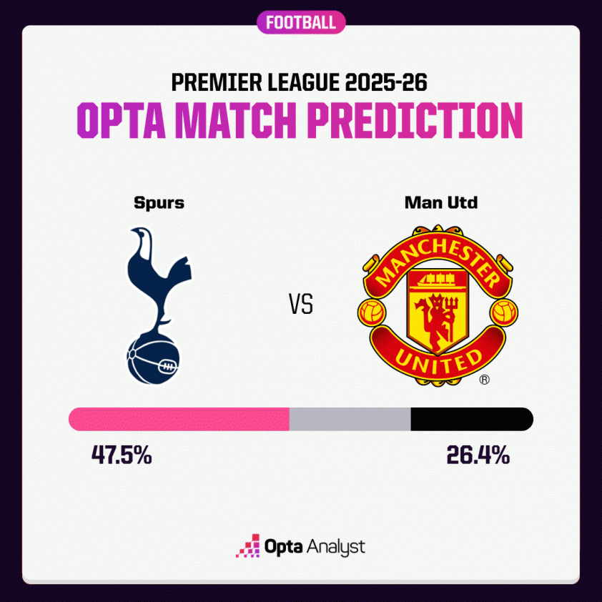 The Opta supercomputer has delivered forecasts and data about the clash between Tottenham and Man Utd in the 11th round of the Premier League.