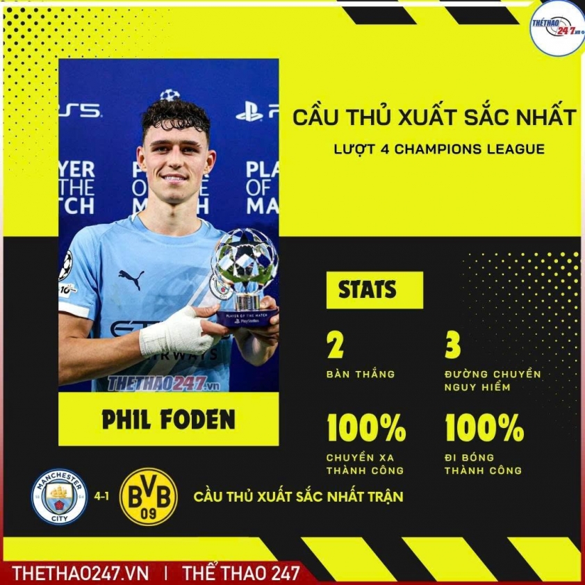 In the 4–1 victory over Borussia Dortmund, Foden shone brightly, scoring twice and providing an assist to help Manchester City secure their place among the top eight teams in the group stage.