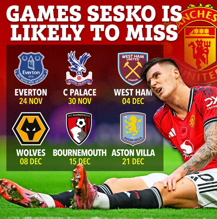 Shashko, who joined Manchester United for €85 million, was injured after missing a one-on-one chance against Tottenham. He suffered a left knee problem and had to leave the pitch immediately, leaving the Red Devils a man down for the last 10 minutes. Fortunately, post-match examinations revealed the injury was not as severe as initially feared. However, having withdrawn from Slovenia's national squad for the international break, Shashko will definitely miss United’s next Premier League match on November 24.