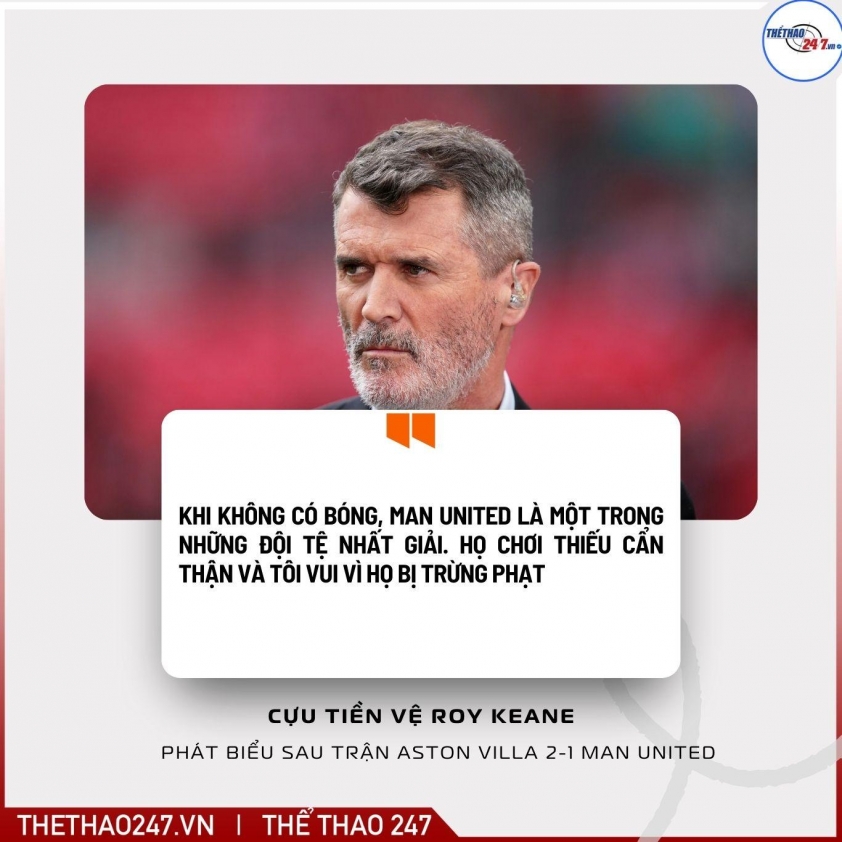 Roy Keane could not hide his frustration as he criticized Manchester United after their 1-2 loss to Aston Villa, even admitting he felt “pleased” to see his old club punished for serious flaws in their play, especially their defensive weaknesses off the ball.