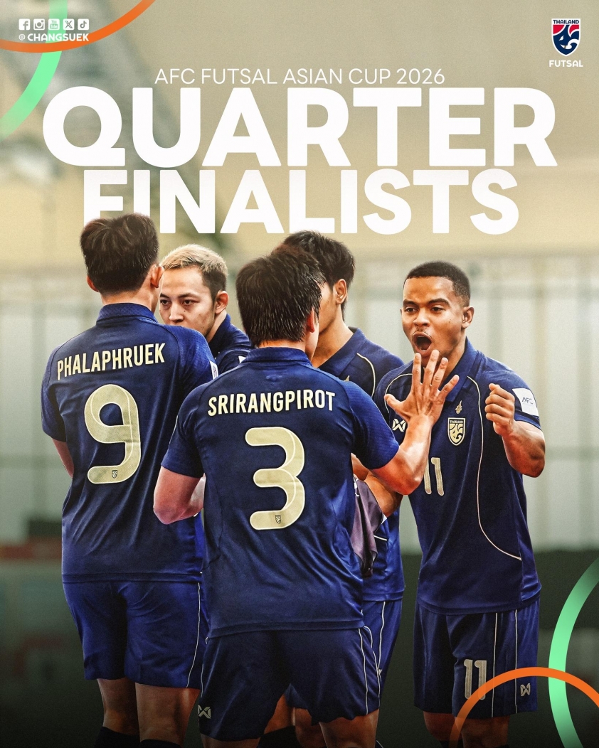Earlier, Madam Pang personally made a video call to encourage the entire team right before the tournament's opening match. The female president of the Thai Football Association also announced a 1,000,000 baht reward if the team passes the group stage, showing her close attention and strong commitment to the country's futsal development.