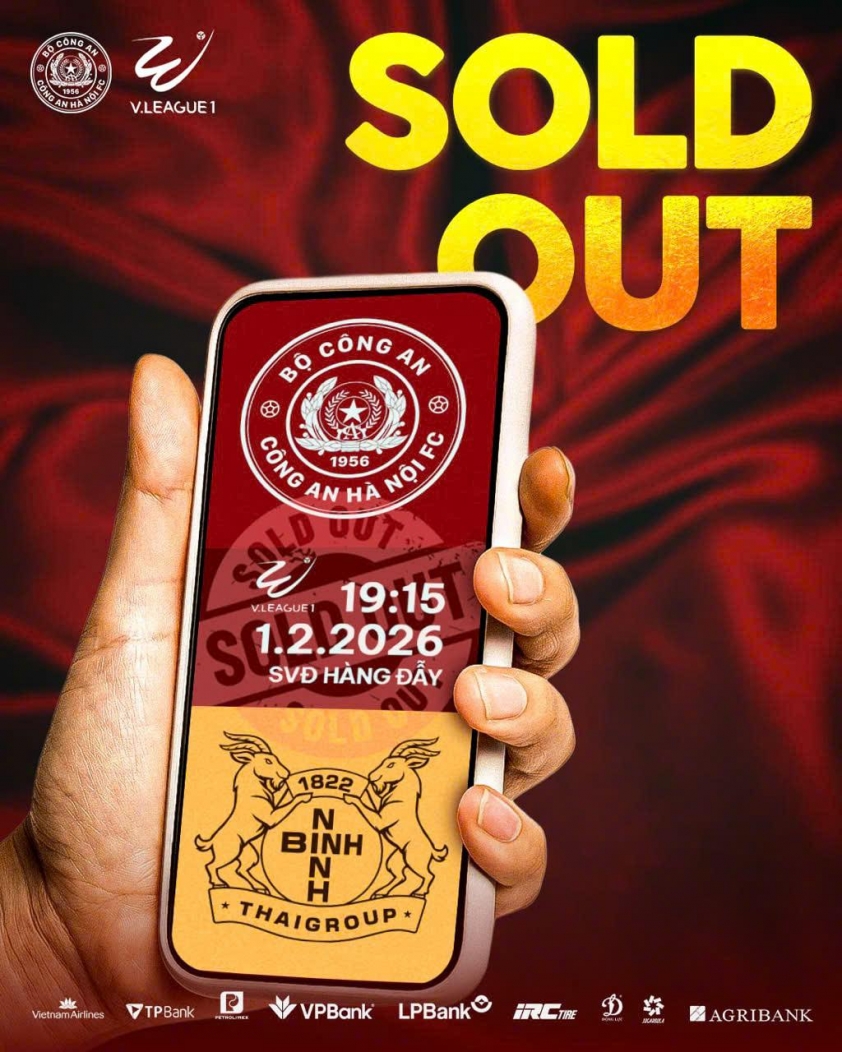 On its official website, Hanoi Police FC confirmed that all tickets for the match against Ninh Bình FC in the 12th round of the V-League have been completely sold out. This highlights the huge appeal of this highly anticipated match, considered the highlight of the round, as both teams are directly competing for the top spot in the standings.