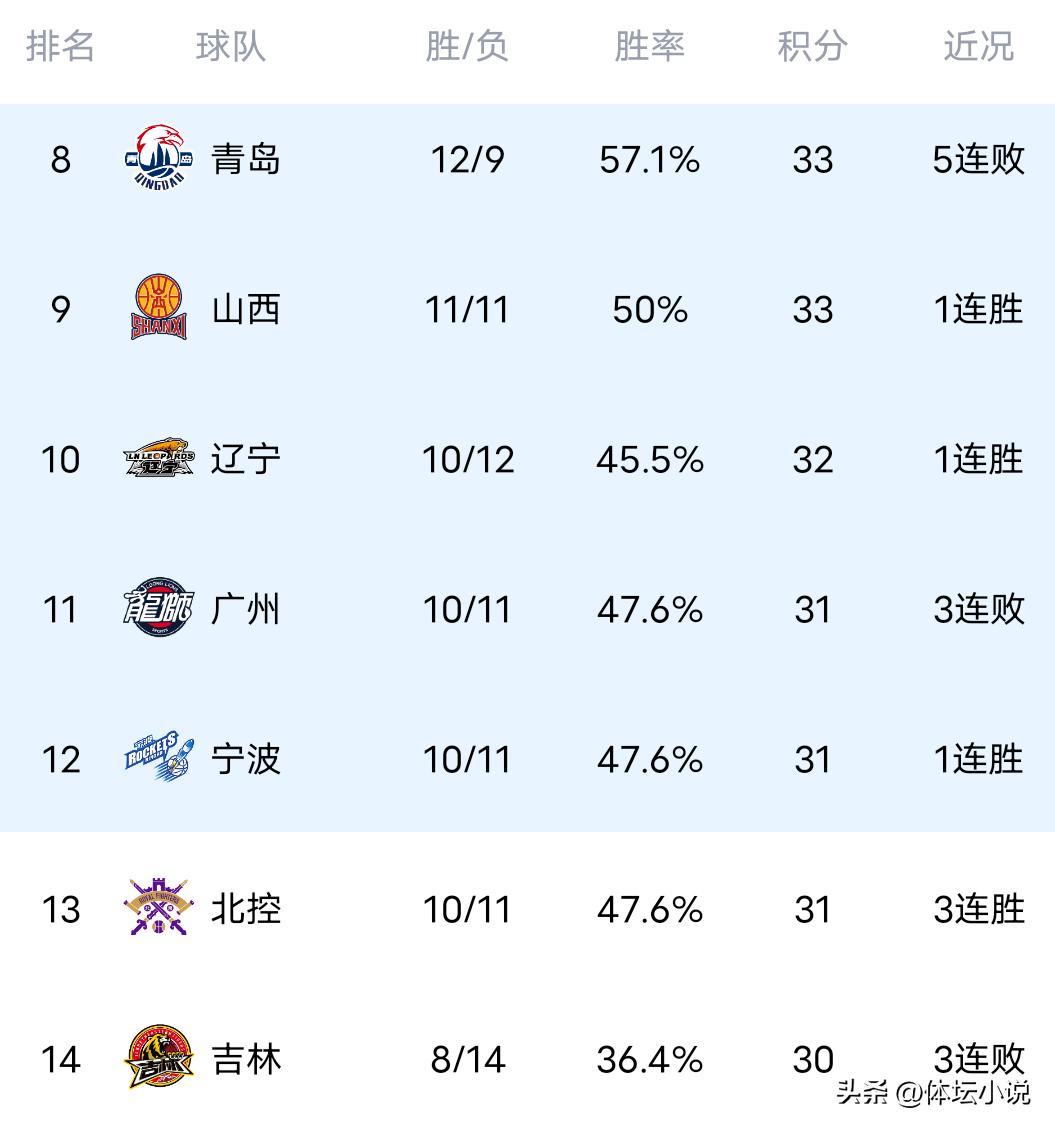 On February 1st Beijing time, the CBA regular season continued with four games finishing last night. Liaoning burst out in the third quarter to defeat the weak Tianjin 105-91, Shandong barely escaped with an 83-80 victory over Guangzhou, Guangsha won a derby against Zhejiang 68-58 despite poor shooting, and Shanxi crushed giant killer Jilin 105-74. Consequently, the standings were thrown into chaos overnight, with Guangsha on a three-game winning streak taking first place, Shandong back to fourth, Zhejiang in seventh, and Liaoning climbing to tenth with their win!