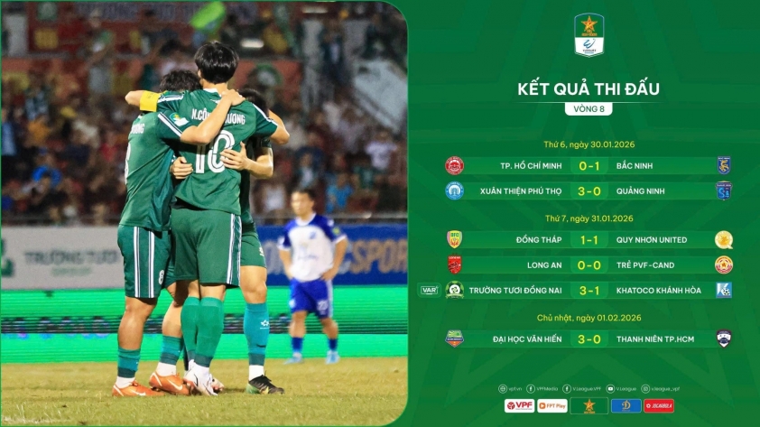 Behind the leaders, round 8 saw several contenders falter. Khatoco Khánh Hòa lost, Quảng Ninh was defeated at Phú Thọ, while Quy Nhơn United only managed a draw at Cao Lãnh. Among the upper group teams, only Bắc Ninh Club capitalized on their chance to take full points, thus keeping pressure on the front runners.