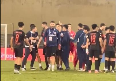 Specifically, immediately after the match ended, Ninh Binh’s coach Gerard Albadalejo lost his composure and rushed onto the field with a very tense attitude. The strategist, born in 1983, approached the main referee from Malaysia, Razlan Joffri, prompting the assistant referees to quickly intervene to prevent the situation from escalating.