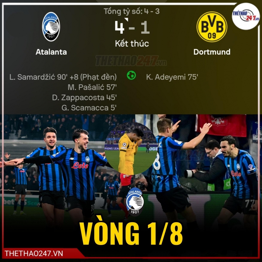 The drama peaked during stoppage time. Kobel made a mistake handling the ball outside the box, creating a decisive chance. After VAR confirmed Ramy Bensebaini committed a dangerous foul on Nikola Krstović, the referee awarded Atalanta a penalty and sent off the Dortmund defender. From the spot, Lazar Samardžić calmly scored the final goal, completing an unbelievable comeback and emotionally advancing Atalanta.