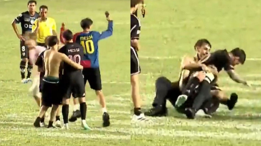In the 88th minute, the match was temporarily halted when a shirtless fan unexpectedly rushed onto the pitch, even inciting others to follow. Notably, while one fan was having a moment with Messi, the aforementioned shirtless man approached directly and suddenly hugged the Argentine superstar down to the grass.
