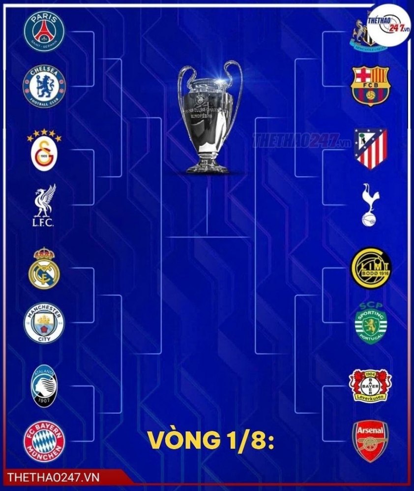 Notably, if Bayern Munich advances past Atalanta, they are likely to clash with Real Madrid or Manchester City in the quarter-finals, while PSG, Chelsea, and Liverpool are also in the opposite bracket. This further reinforces the view that Arsenal has received the "dream draw." With a balanced squad, strong form, and the advantage of home legs in return matches, Arteta's team has every right to dream of a historic Champions League campaign.