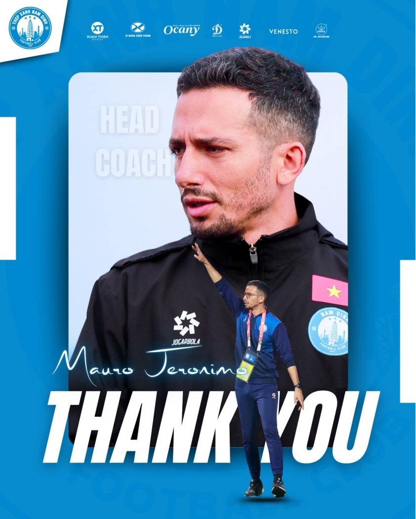 On February 26, Nam Dinh FC officially announced the termination of the contract with Portuguese coach Mauro Jeronimo. This strategist lasted only 104 days in the position. Although he led the southern team to the ASEAN Club Championship semifinals, the performance in the domestic league did not meet the expectations set by the leadership at the start of the season.