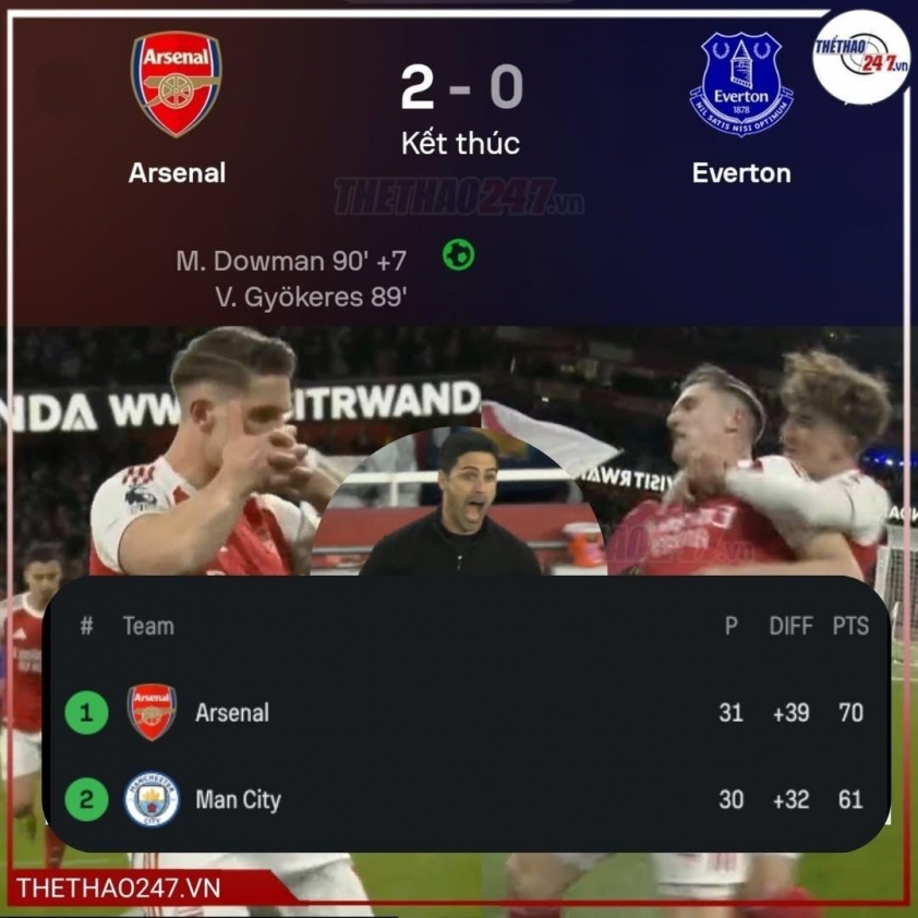 Dowman's historic goal came from a counterattack in the final seconds. When Everton pushed forward aggressively, even with goalkeeper Jordan Pickford joining a corner kick, Arsenal successfully cleared the ball. Dowman received the ball from his own half, sprinted past the opposing defense before easily slotting the ball into the empty net, sealing an impressive victory for Arsenal and simultaneously helping the team widen the gap with Manchester City in the title race.