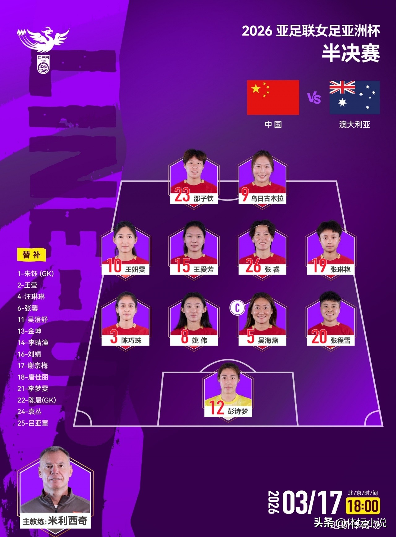 Both China and Australia are strong teams in Asia, having faced each many times and knowing each other well. However, China is in a weaker position and has little advantage against Australia's physical strength. Both teams entered the semi-finals unbeaten in this tournament, indicating they are in peak form. Therefore, this semi-final is destined to be thrilling!