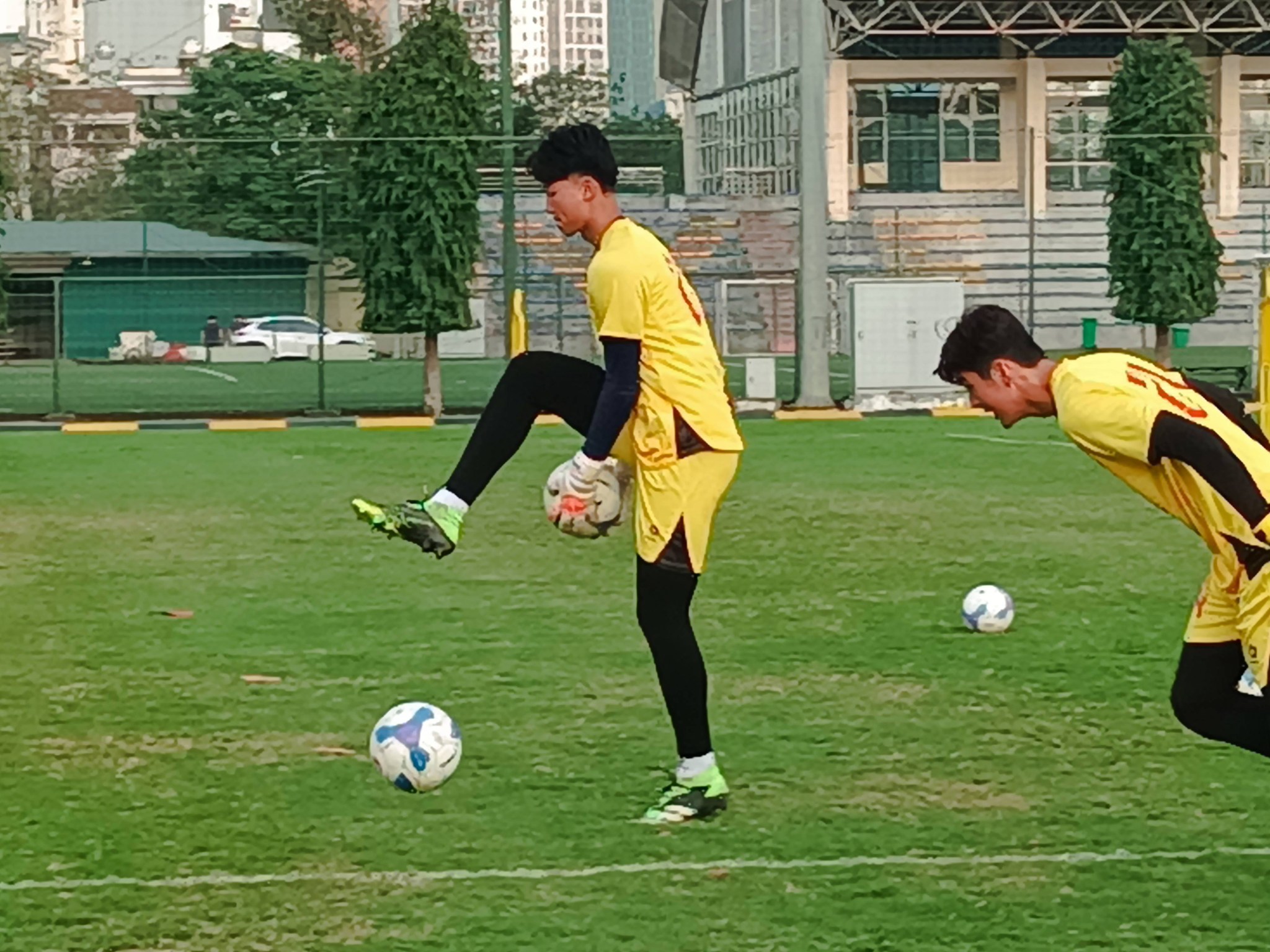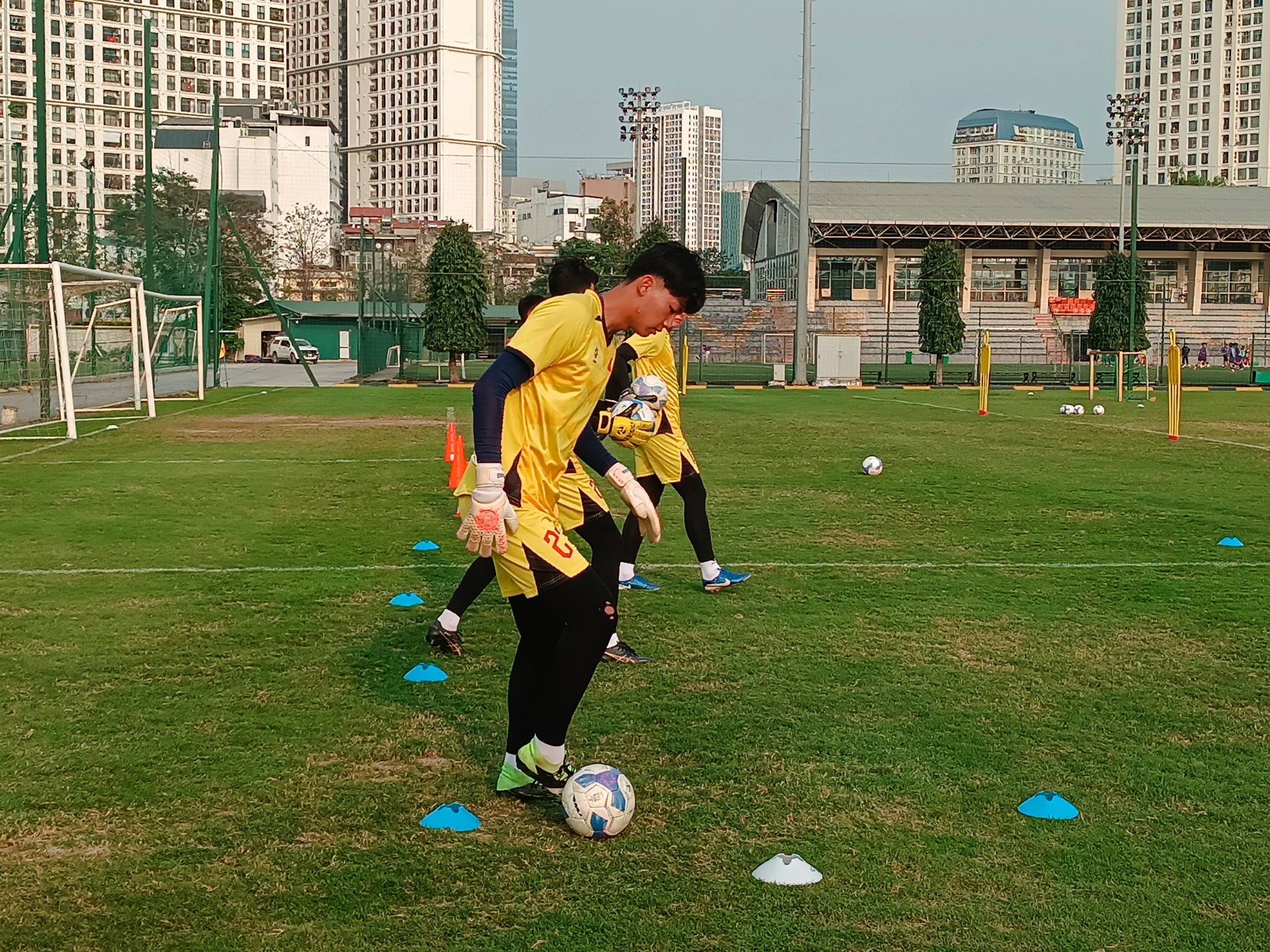 During the training session on March 17, Nhat Ka impressed with his outstanding height. He and other goalkeepers carried out the prescribed training drills, including exercises for controlling the ball with their feet.