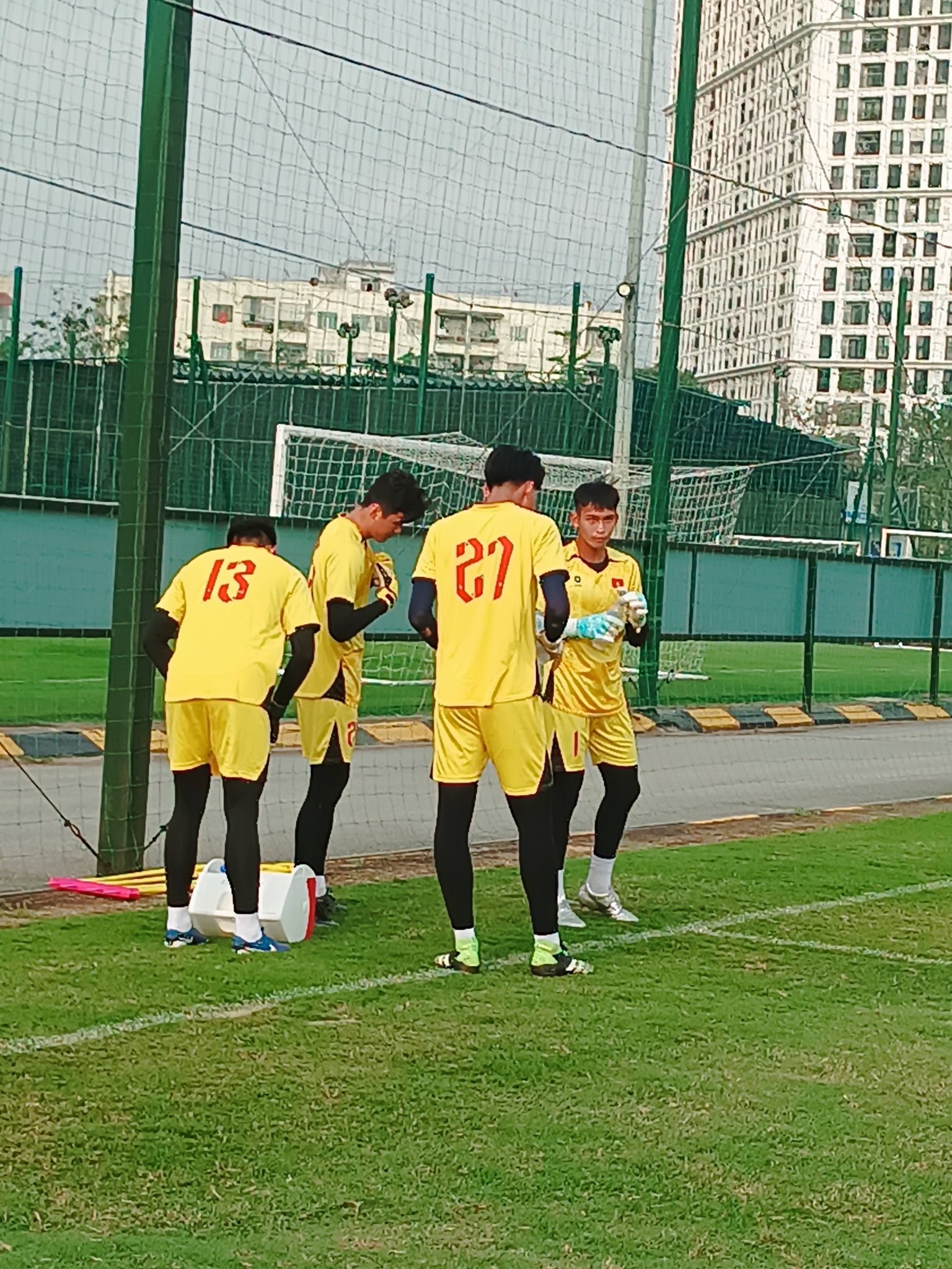 Goalkeeper Nguyen Ba Nhat Ka stood out in the Vietnamese U19 training session because of his remarkable height of 1.96m.