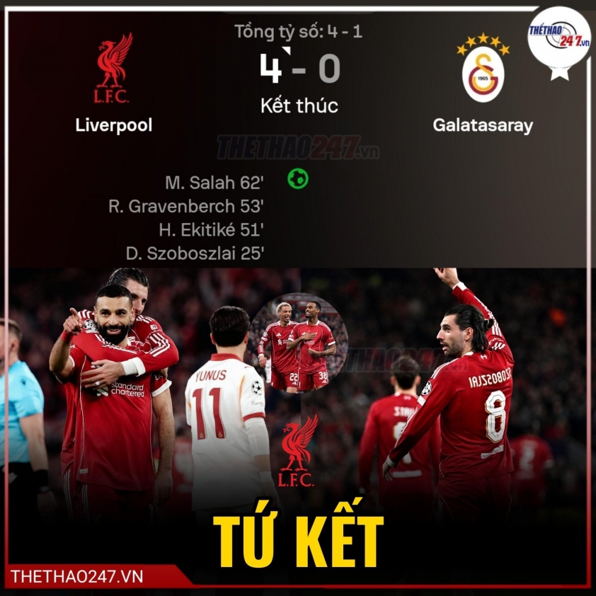 Mohamed Salah further solidifies his iconic status at Liverpool by etching his name into Champions League history during a 4-0 victory over Galatasaray at Anfield. Not only playing a crucial role in helping The Reds reverse the situation to advance to the quarter-finals, the Egyptian star also becomes the first African player to reach 50 goals in the Champions League.