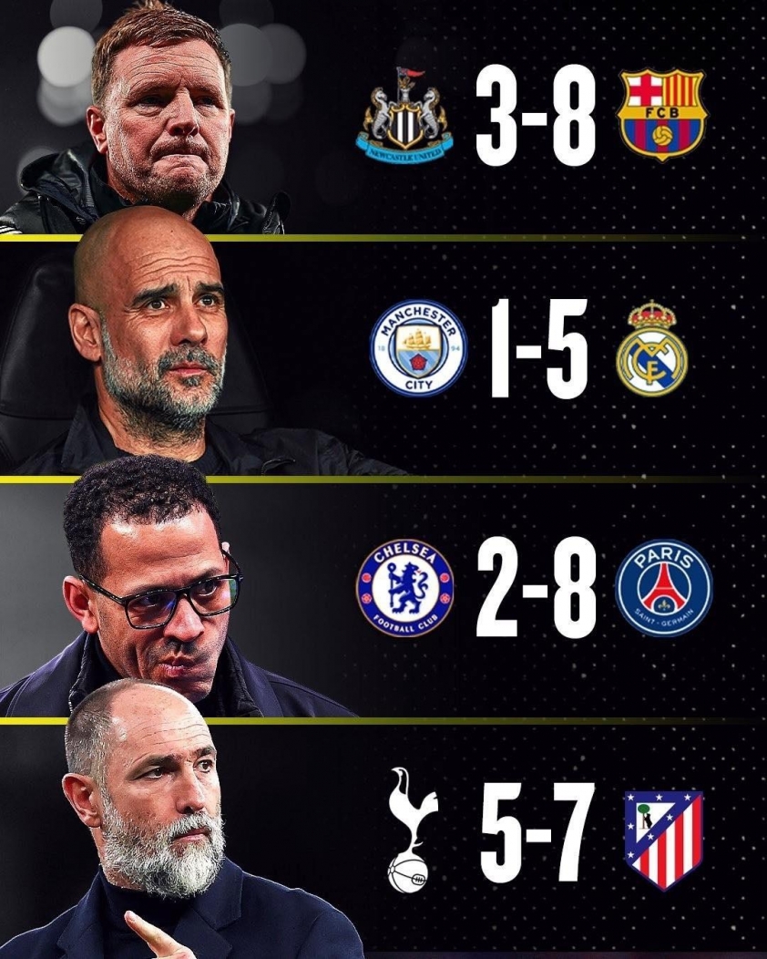 Manchester City, Chelsea, Newcastle, and Tottenham all stopped at the round of 16. A rare scenario, where four representatives from a major football nation were eliminated in the same round. Altogether, they conceded 28 goals over the two legs – a number sufficient to illustrate the gap.