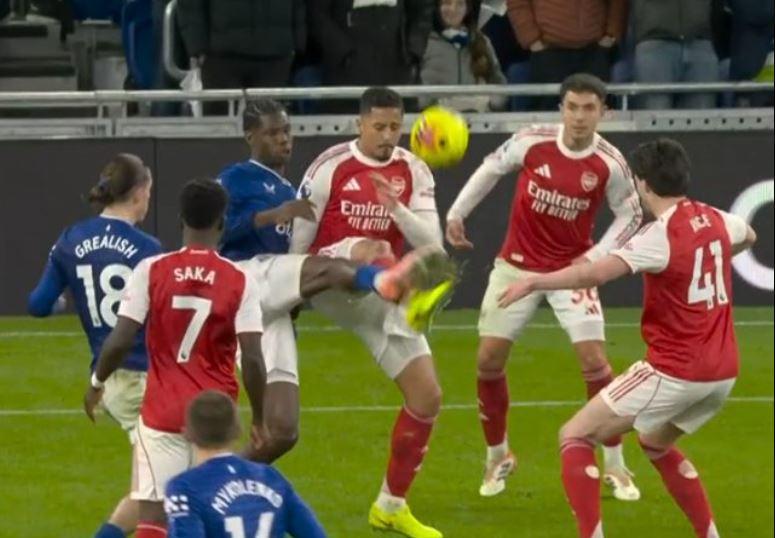 In that incident, William Saliba's foul on Thierno Barry was not deemed a foul by VAR, and referee Salisbury was also the VAR overseer for that match.