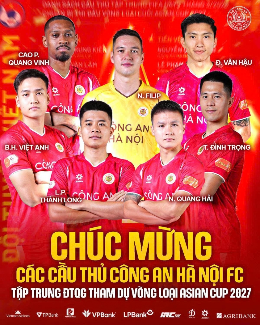 Due to playing the postponed match of Round 13 of the V-League against SHB Da Nang Club at Chi Lang Stadium, seven players from the police sector team were the last to join the national team camp. After completing their duties with their club, Doan Van Hau, Bui Hoang Viet Anh, Nguyen Quang Hai, Cao Pendant Quang Vinh, Le Pham Thanh Long, Tran Dinh Trong, and Nguyen Filip will join their teammates today, March 23.