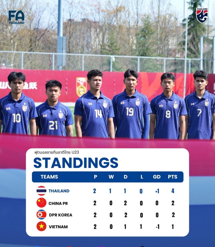 The 1-0 victory gives Thailand's U23 4 points after 2 matches, temporarily holding the lead in the championship race at the friendly tournament in China. For the Golden Temple nation's media, this is not merely about 3 points, but also a sign that the team is gradually regaining confidence after a period of unfavorable confrontations against Vietnam's U23 and U22 squads.