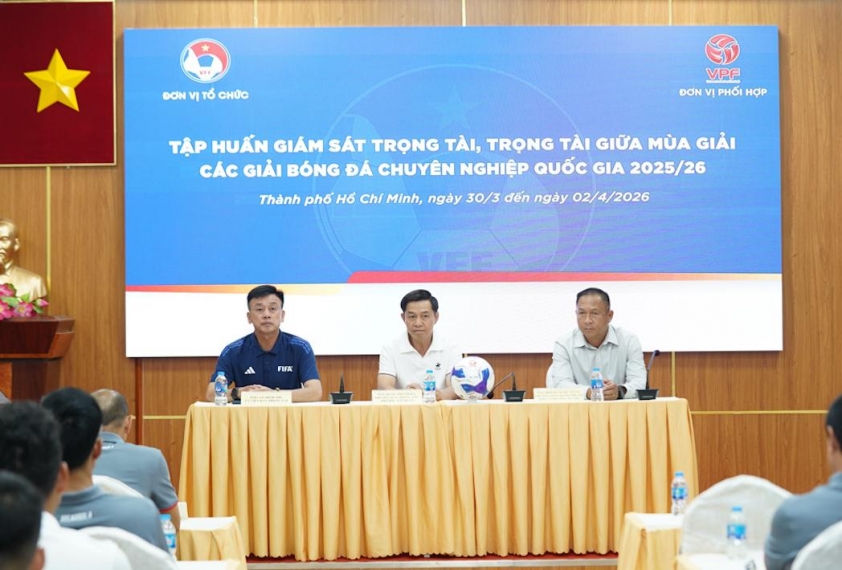 On the afternoon of March 30th, at the Thống Nhất Sports Hall (Ho Chi Minh City), the Vietnam Football Federation (VFF) collaborated with the Vietnam Professional Football Joint Stock Company (VPF) to launch the second mid-season training session for referee supervisors and referees of the national professional football leagues for the 2025/26 season.