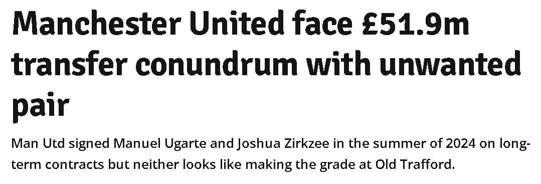 One issue United may face in finding buyers for these two players this summer is that their contracts are less than half completed. Ugarte joined from Paris Saint-Germain for £50.5 million, meaning his book value is around £30 million; Zirkzee joined from Bologna for £36.5 million, his book value is approximately £21.9 million.