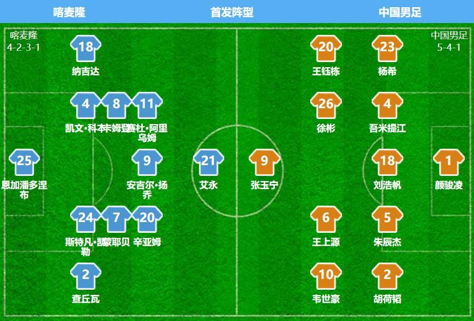 Just three minutes into the game, Cameroon pierced China's defense with a sharp through ball, and Aiyong calmly pushed the shot into the net from near the edge of the small penalty area, putting China behind 0-1. Only six minutes later, Cameroon capitalized on a tactical corner opportunity, with Alium scoring with a powerful shot from the back post while unmarked, extending the lead to 0-2. Losing two goals within the first nine minutes plunged China into an extremely passive situation.
