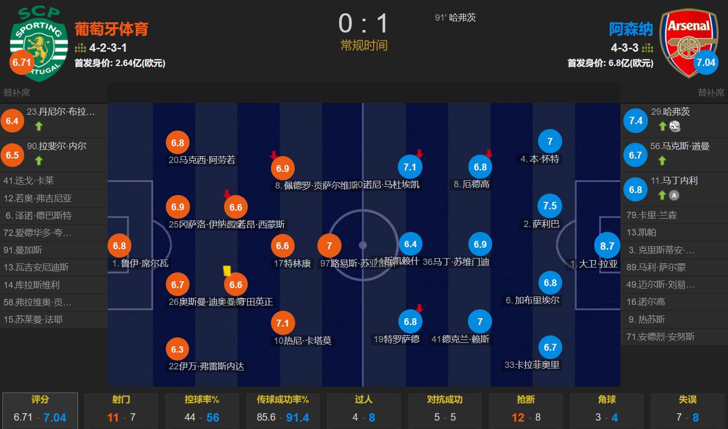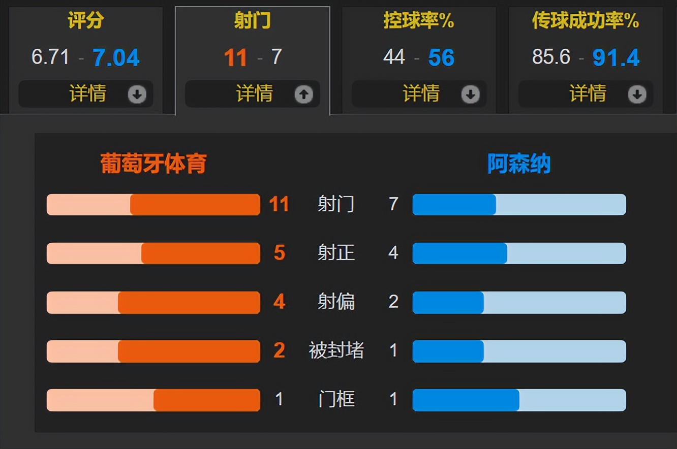 This victory holds significant meaning for Arsenal. It is not only a precious away win but also a morale boost following consecutive domestic cup setbacks. The team demonstrated resilience by securing the match through solid defense and efficient counterattacks despite not dominating the game (Shots: 7-11, shots on target: 4-5). Sporting CP, meanwhile, had to swallow the bitter pill of their first home Champions League defeat this season; although they created more shooting opportunities, their lack of finishing cost them dearly.