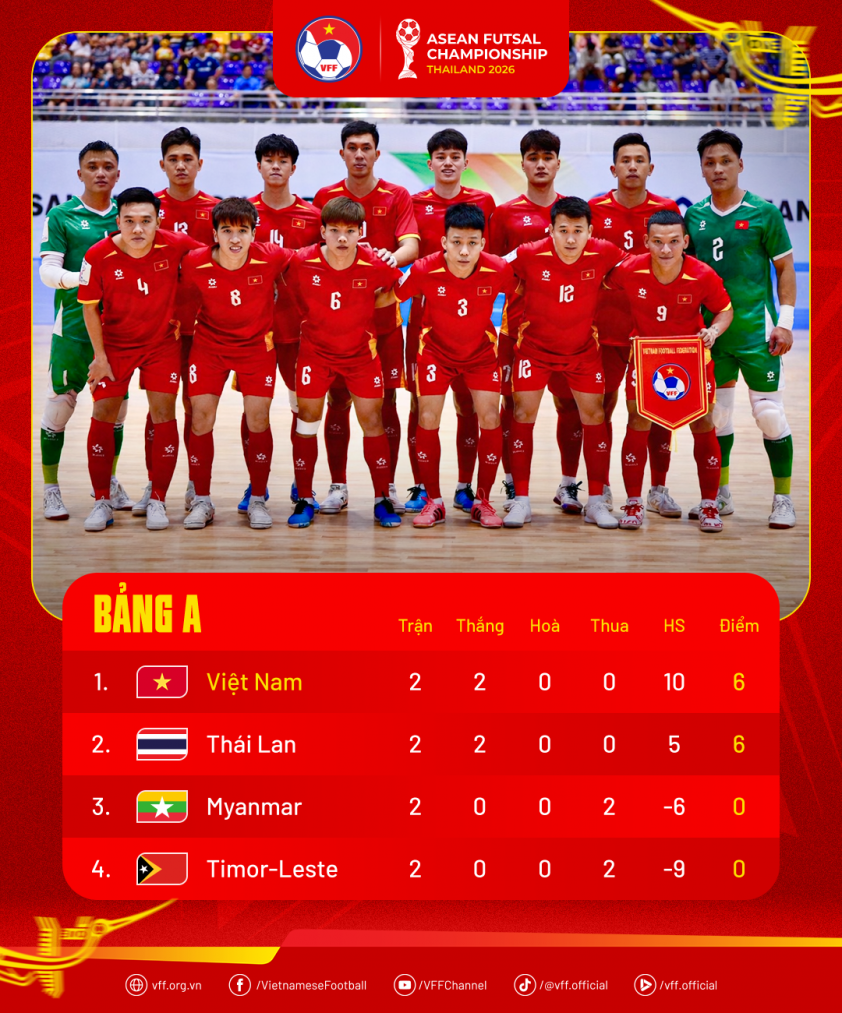 Returning to tonight's match, the outcome depends not only on performance but also on the strategies of both coaching staffs. However, given that both have already secured semifinal berths, the primary priority for both Vietnam's national futsal team and Thailand is likely ensuring the best squad for the upcoming stages.