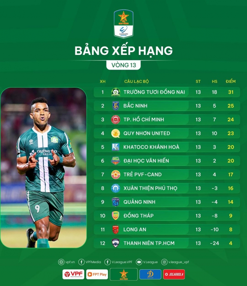 For the first time since the start of the league, Quy Nhơn United has achieved a streak of three consecutive wins, solidifying their position in the group competing for the runner-up spot. This impressive performance makes the "Central Region derby" against Khánh Hòa hotter than ever. Meanwhile, rivals like Bắc Ninh FC and TPHCM must also accelerate as the season enters its decisive phase.