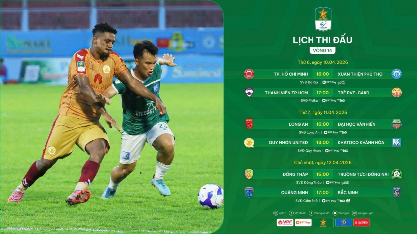 Two early matches of round 14 took place on April 10. TPHCM (24 points, 3rd place) has home advantage and only faces newcomer Xuân Thiện Phú Thọ (16 points). The victory against Khánh Hòa in the previous round helps the team coached by manager Minh Phương continue to closely follow the runner-up race. Meanwhile, Xuân Thiện Phú Thọ showed instability by losing heavily to Quy Nhơn United. If TPHCM cannot secure all 3 points, it would be a major surprise.