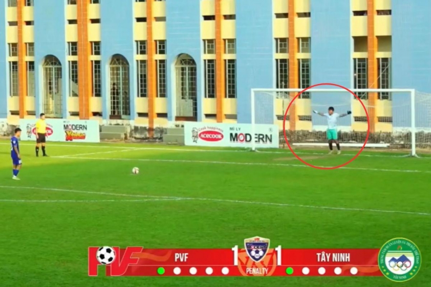 This bold decision left spectators astonished but quickly proved effective. In the third penalty round, Huu Quang successfully blocked the shot from a U15 PVF player, which was also the only missed attempt by this team.