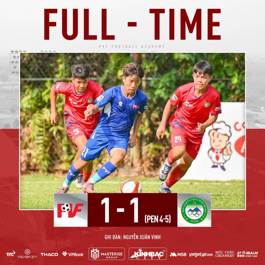 In the match held on April 9, U15 PVF was rated higher and quickly demonstrated their strength. After several attacking phases, this team scored the opening goal in the 51st minute thanks to Nguyen Xuan Vinh. However, just 4 minutes later, U15 Tay Ninh unexpectedly equalized when Vo Anh Hao capitalized on a defensive mistake to level the score 1-1. The match thereafter became tense and no additional goals were scored in regular time, forcing both teams into a nerve-wracking penalty shootout.