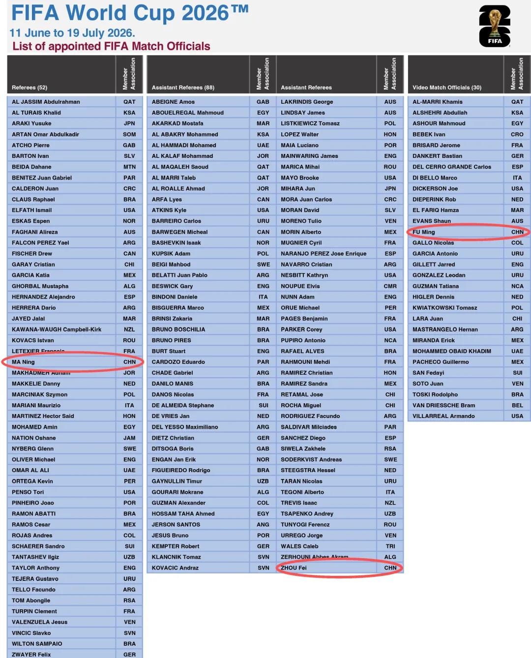 ▲Final list of referees for the 2026 World Cup