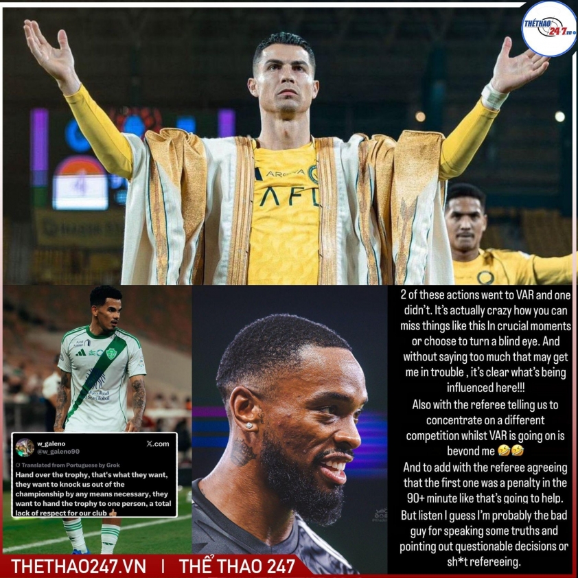 Nevertheless, the controversy surrounding Ronaldo has not subsided. Previously, Al-Ahli striker Ivan Toney publicly criticized VAR and referees after the controversial 1-1 draw against Al-Fayha. He claimed that many unfavorable decisions caused his team to lose crucial points.
