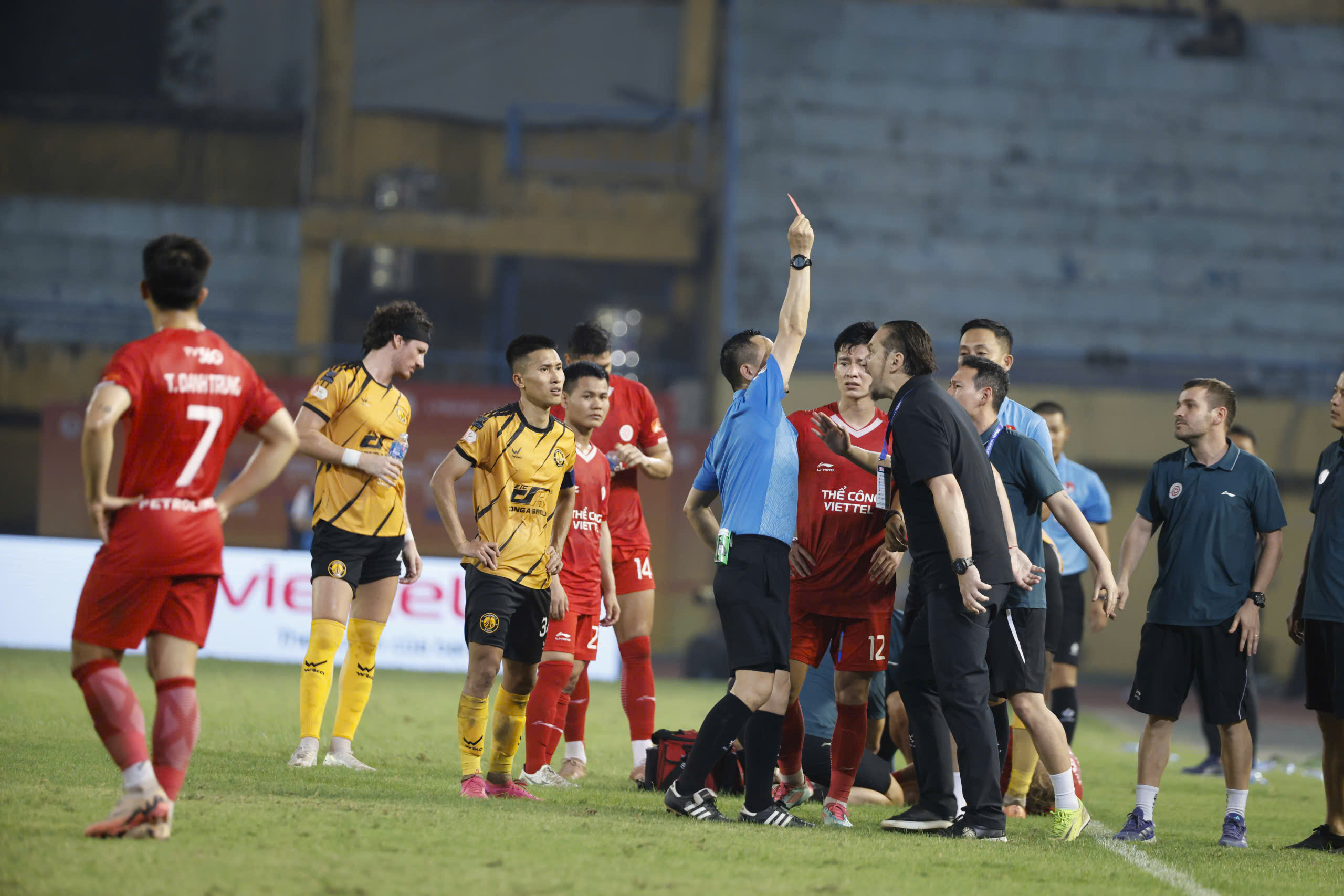 After conceding, Thanh Hoa FC pushed forward but could not achieve an equalizing goal. At the end of the match, The Cong Viettel's Coach Popov received a red card for a reaction offense. He even removed his nameplate and threw it onto the field. After 90 minutes, The Cong Viettel secured a 1-0 victory over Thanh Hoa FC.