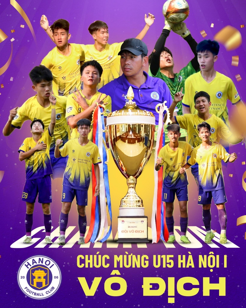 After 7 national U19 championships, 6 national U21 championships, 2 national U17 championships, 1 national U9 championship, and 1 U14 championship for Northern clubs, this is the first time Hanoi youth football has won the national U15 championship. Thus, Hanoi has officially completed the collection of 4 national youth championship cups (U15 - U17 - U19 - U21).