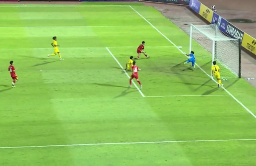 Malaysia U17 organized a fast counterattack, Yusuf shot from outside the penalty area beating goalkeeper Xuan Hoa, but the ball narrowly missed the post, allowing Vietnam U17 to escape defeat.