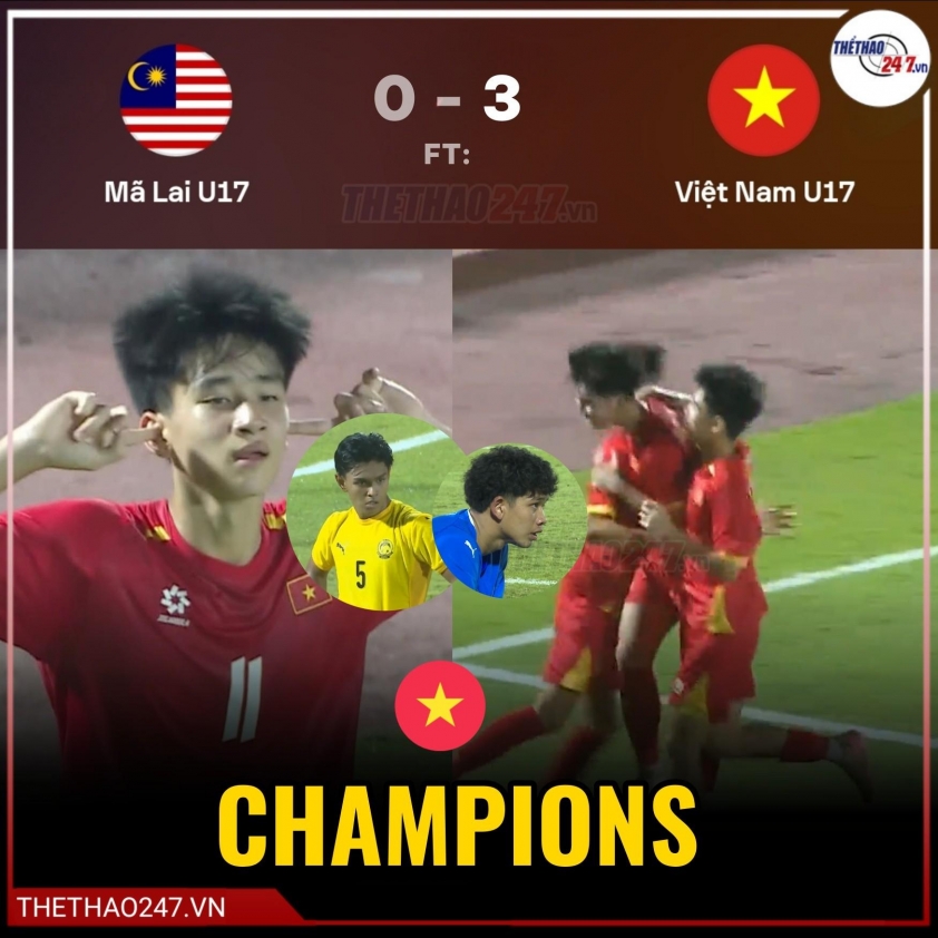 Vietnam U17 achieved a dominant victory over Malaysia U17 in the Southeast Asian U17 Championship final.