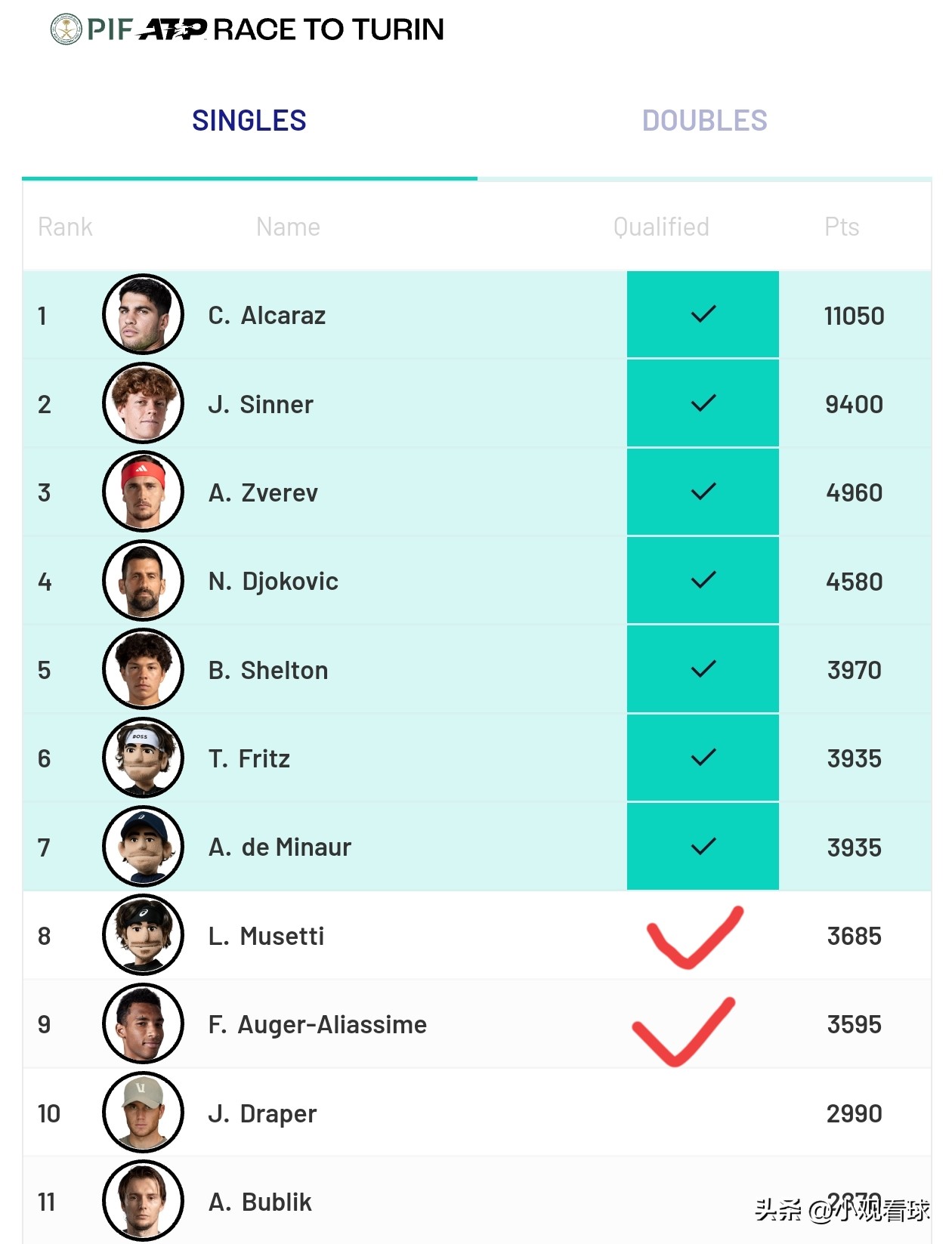 2. Musetti. Currently ranked eighth in the Turin points race, his position is uncertain after an early exit at this week’s Paris Masters. If Alcaraz does not win in Paris, Musetti still has a strong chance to secure the final qualifying spot. Therefore, he must give it his all next week.