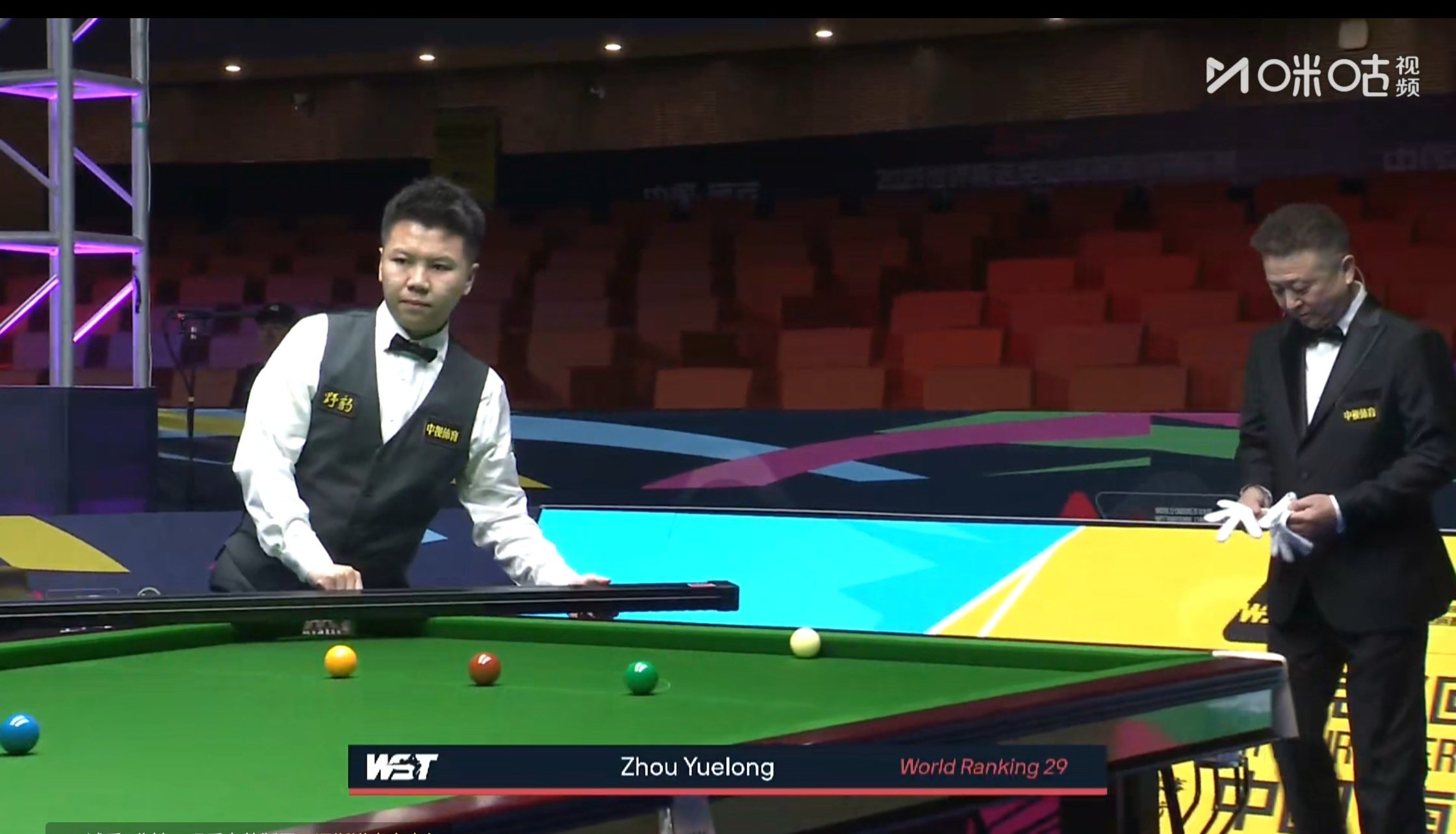 Yangshipin and Migu Video are live streaming the Snooker China National Championship match between Zhou Yuelong and Wang Xinbo.