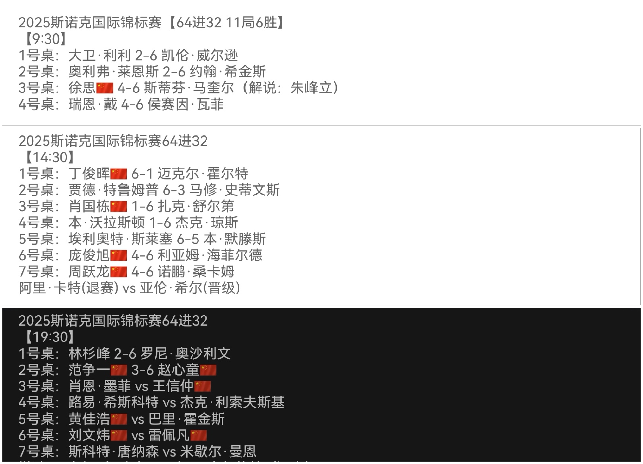 Below are the detailed results of the national players’ matches today, arranged in order of playtime.