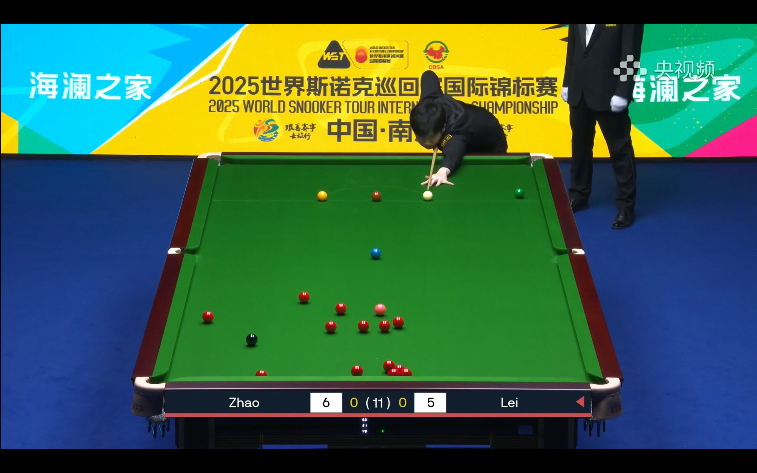 This match is part of the 1/16 finals, following a best-of-11 frames format. The players are currently competing in the first frame, with the score standing at Zhao Xintong 6 - 5 Lei Peifan.