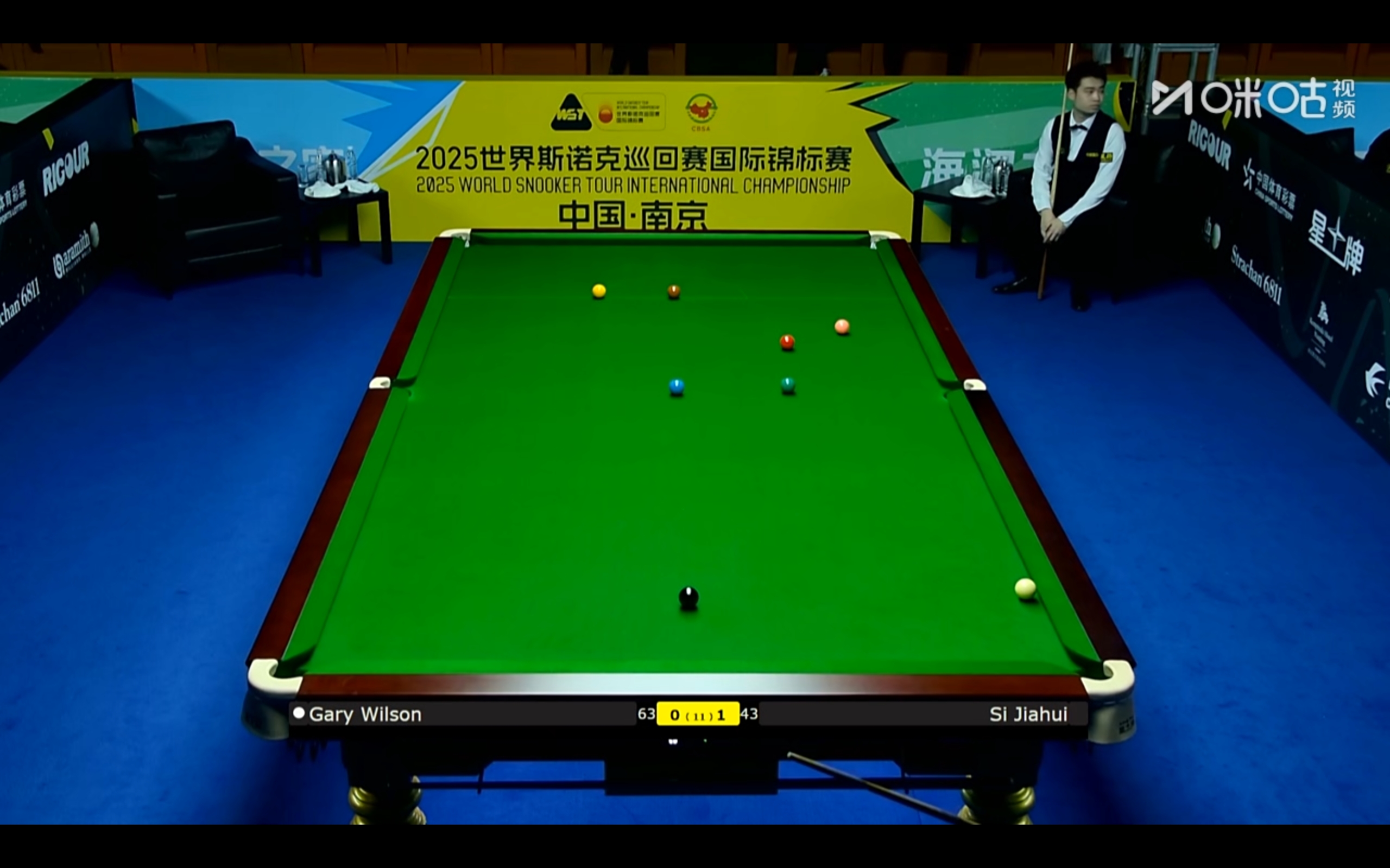 This match is part of the round of 32 to 16, using a best-of-11 frames, first to 6 wins format. Si Jiahui won the first frame, taking a 1-0 lead over Gary Wilson. In the second frame, Si Jiahui is behind 43-63 to Gary Wilson.