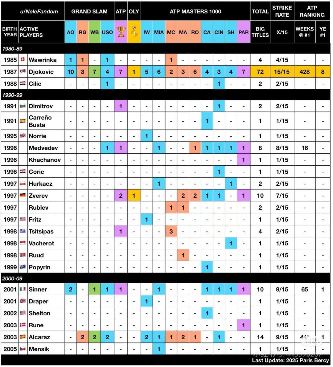 In the upcoming season, with each missing one Grand Slam title, these two are bound to fiercely compete in the Grand Slam domain, and they also appear to be battling intensely on the track to claim the "Golden Master" title.