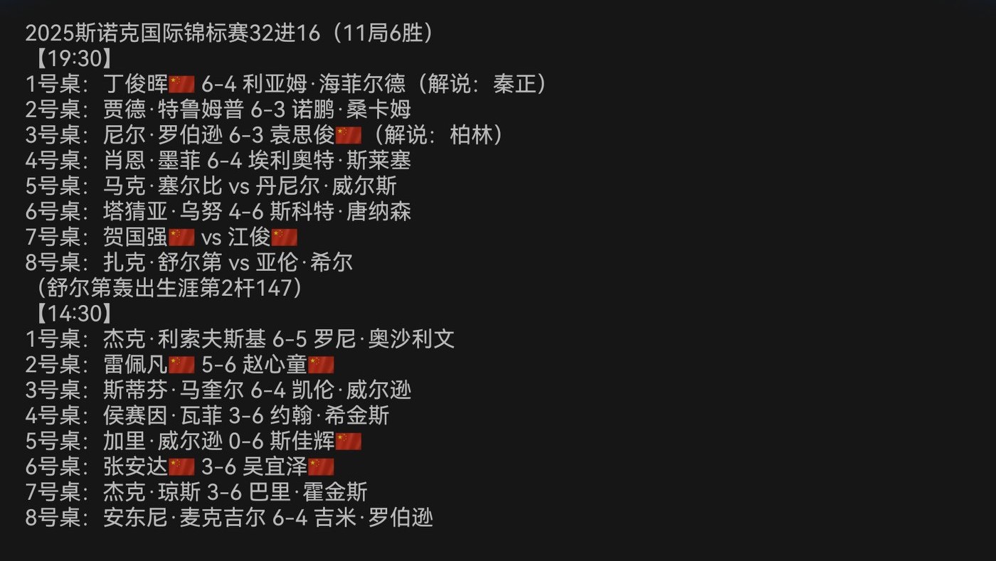 The Snooker National Championship update for today (2025.11.4): Chinese players hold a 5-4 win-loss record, with Zhao Xintong, Ding Junhui, and others qualifying for the last 16.