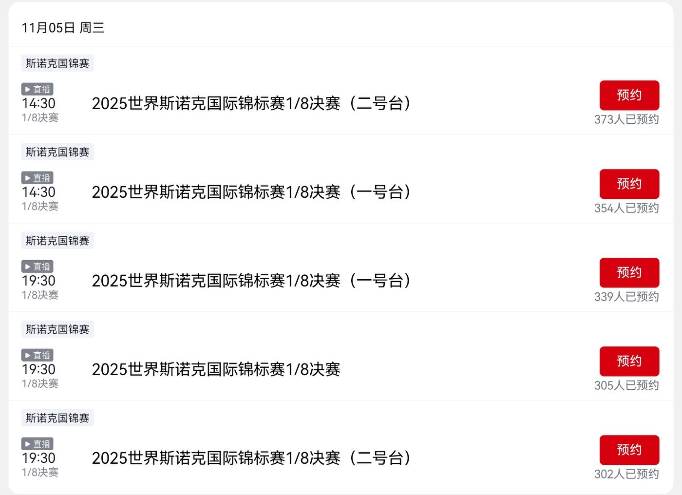 Tomorrow's (2025.11.5) Snooker National Championship schedule includes Ding Junhui, Zhao Xintong, Si Jiahui, Wu Yize, and others, with live broadcasts on CCTV-5, Migu Video, and Huya.