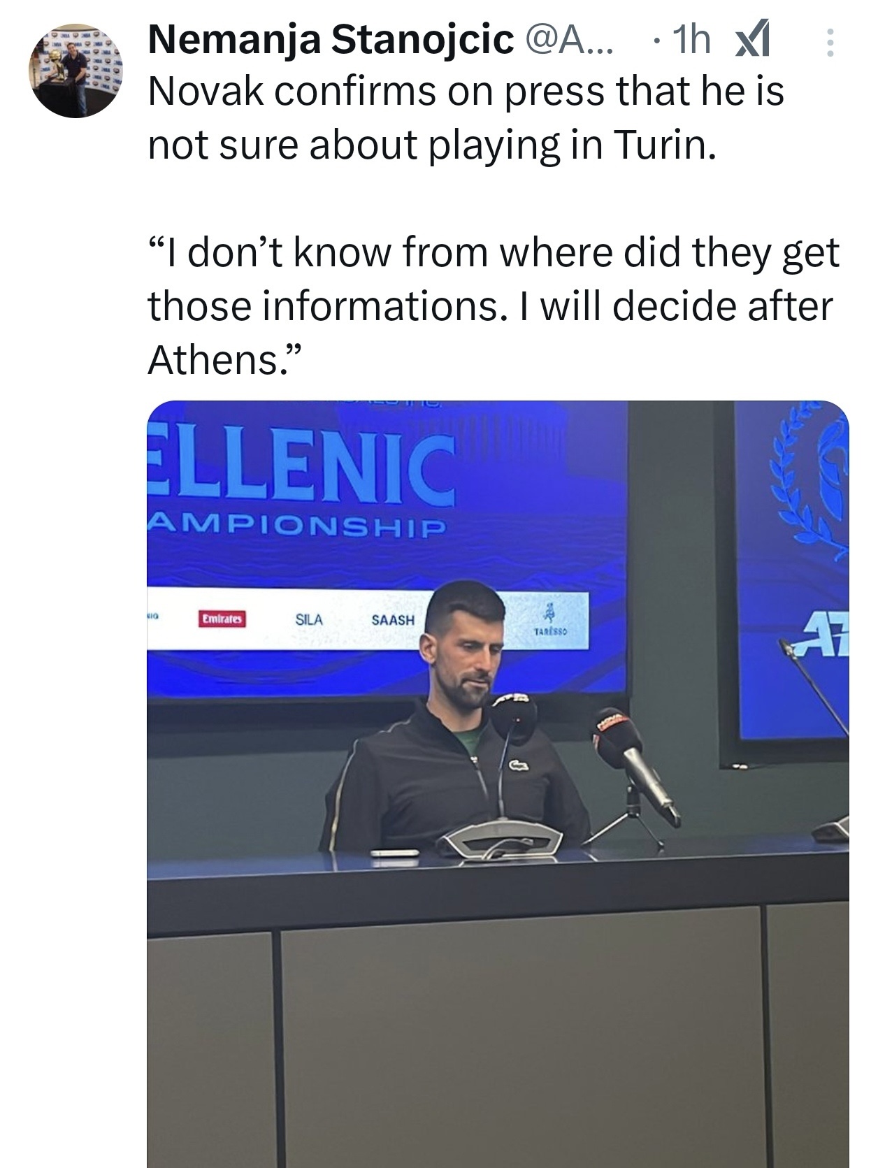 Djokovic further explained that the decision about participating in the year-end finals will be made after the conclusion of the Athens tournament, based on his physical condition and overall situation: “I haven’t confirmed anything yet,” he added.