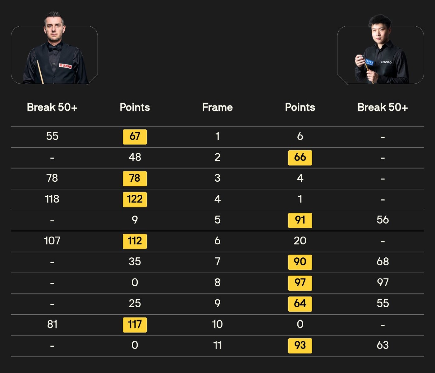 Secondly, Selby’s performance today was outstanding. His defense was so tight that Zhao had no chances in the early frames.