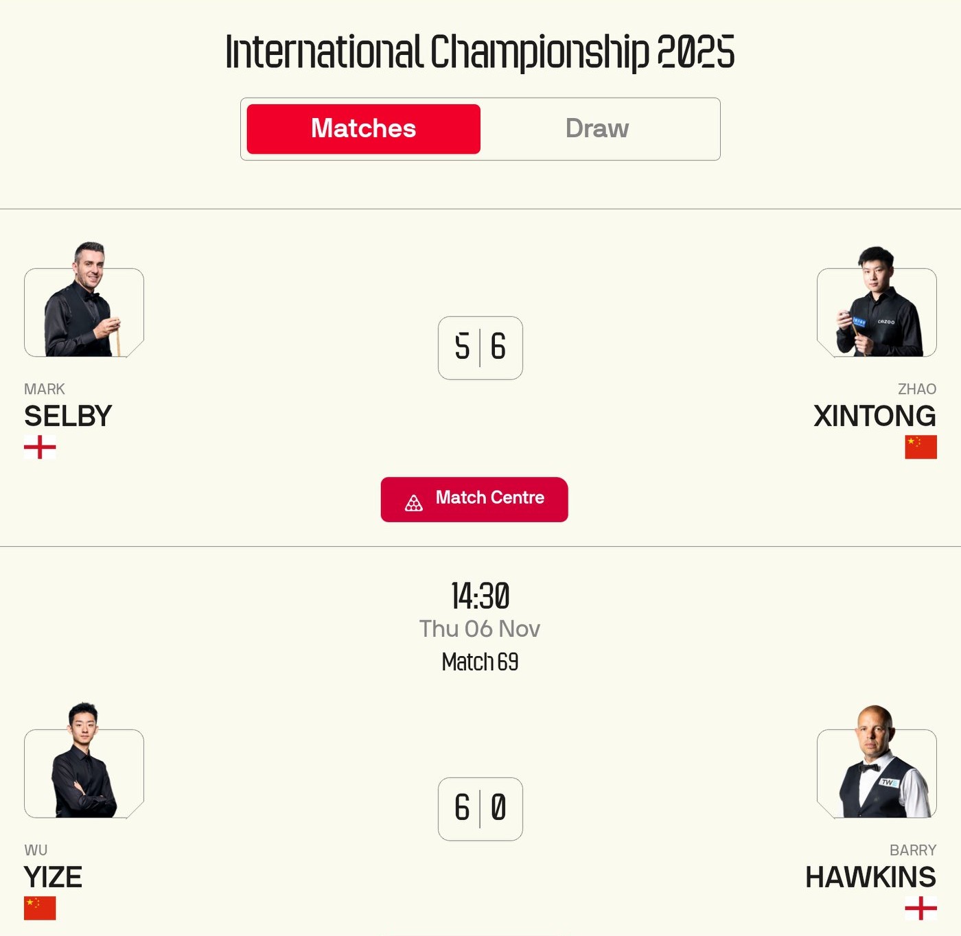 First quarterfinal match:Zhao Xintong 6-5 Selby.