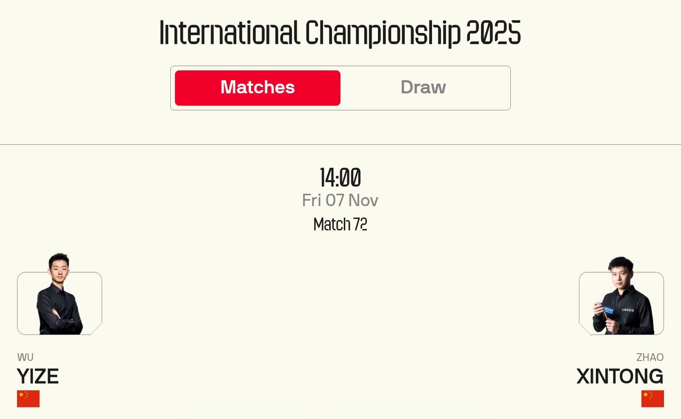 First session:Tomorrow at 2 PM, Zhao Xintong faces Wu Yize, playing up to 8 frames.